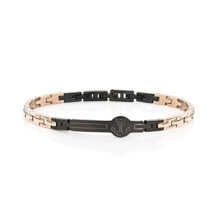 Bracciale da uomo in acciaio rosato e nero con ancora, simbolo di avventura.