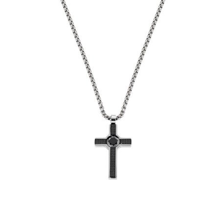 Collana da uomo in acciaio con croce e zircone nero, lunghezza regolabile.