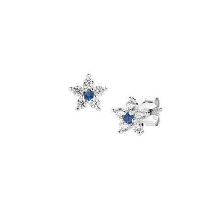 Orecchini a lobo in argento 925 con zirconi blu e bianchi, eleganti e raffinati.