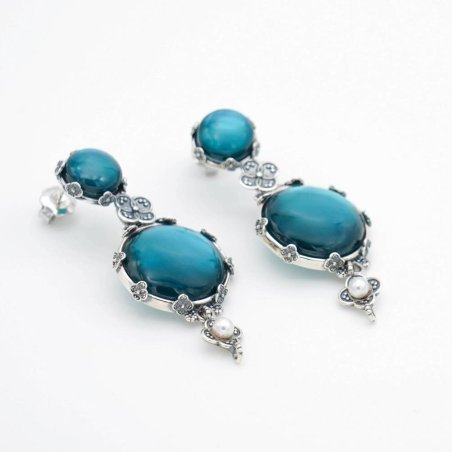 Eleganti orecchini in argento 925 con pietre lisce, firmati Gerardo Sacco.
