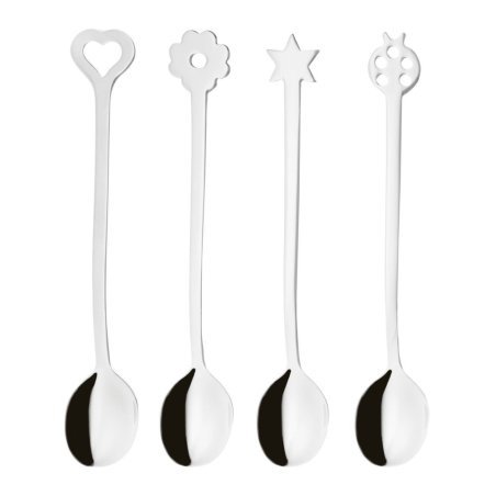 Set di 4 cucchiaini Sambonet con simboli portafortuna e finitura a specchio.