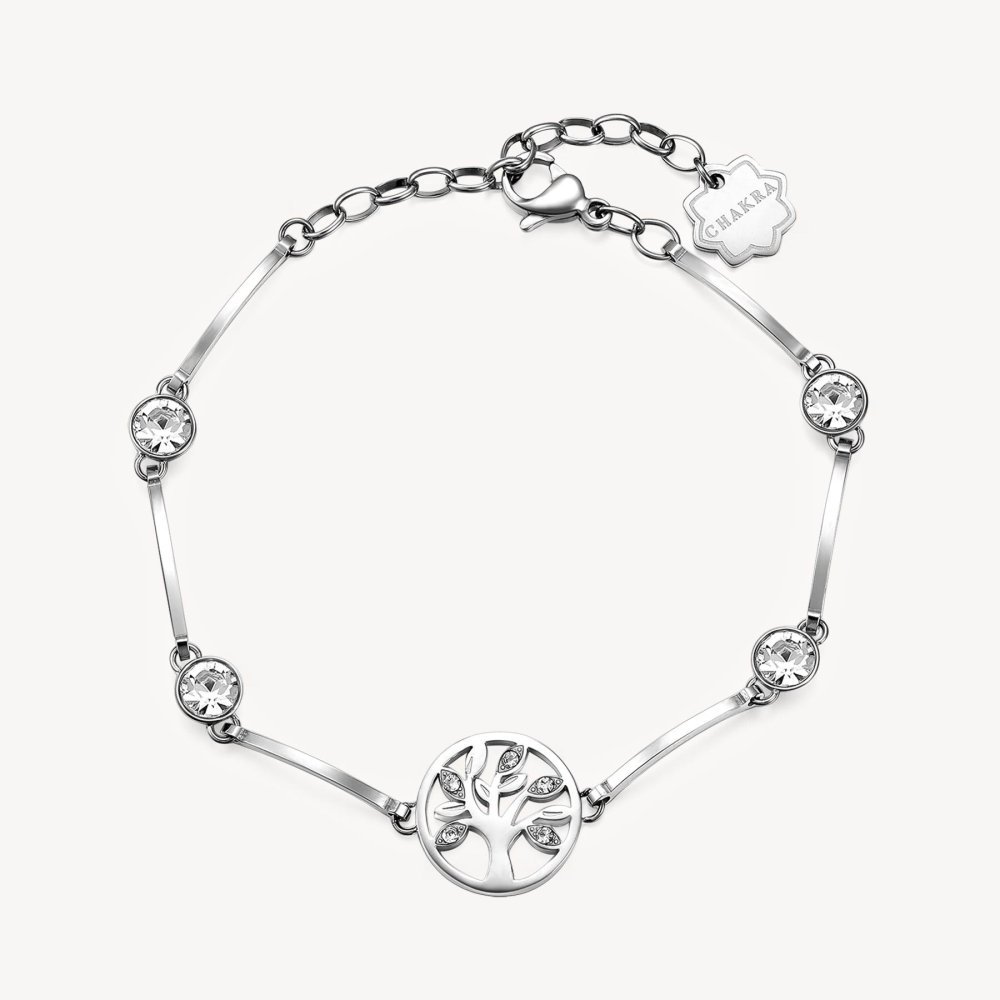 Bracciale Chakra Mistici di Brosway in acciaio con cristalli e simbolo Albero della Vita.