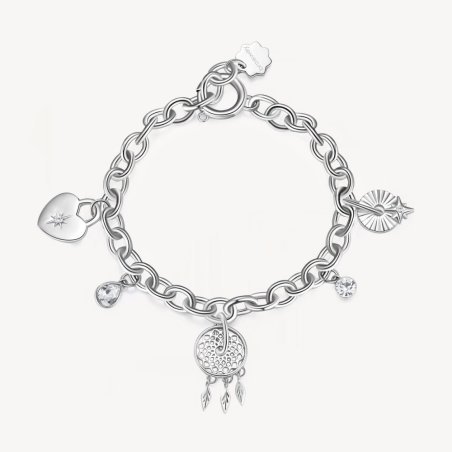 Il Bracciale Chakra Acchiappasogni di Brosway è un simbolo di serenità, protezione e speranza. Questo bracciale è progettato per cullare la persona nei sogni positivi e proteggerla da quelli negativi. L'acchiappasogni permette ai pensieri felici e alle energie positive di passare attraverso il suo centro, raggiungendo la mente durante il sonno. Realizzato in acciaio 316L, il bracciale presenta una catena rolò con pendenti a forma di acchiappasogni, cuore, stella e cristalli, rendendolo un accessorio elegante e significativo.