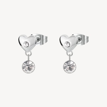 Orecchini Chakra di Brosway in acciaio con cristalli a forma di cuore.