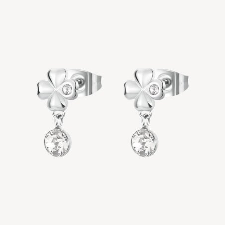 Orecchini Chakra di Brosway in acciaio con cristalli e quadrifoglio.