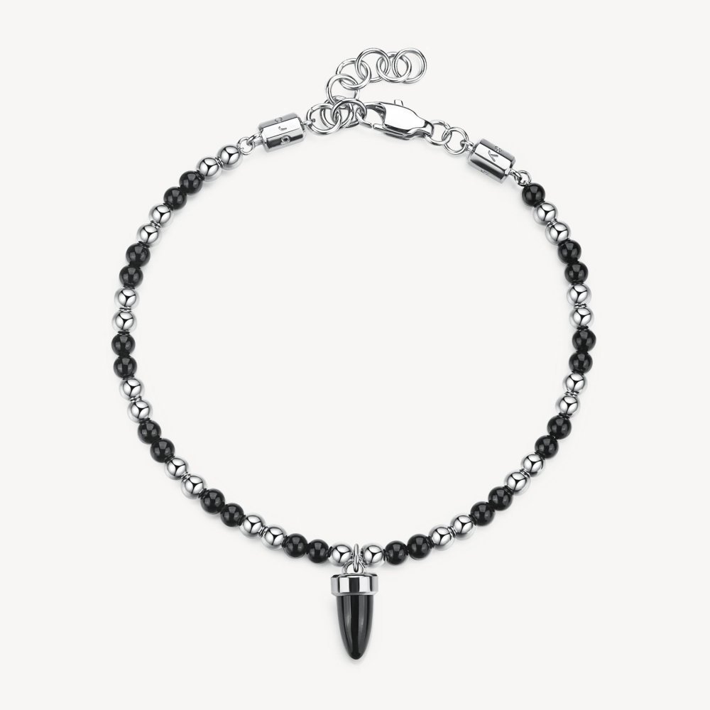 Bracciale in acciaio con sfere e pendente in onice nero, collezione RIPTIDE.