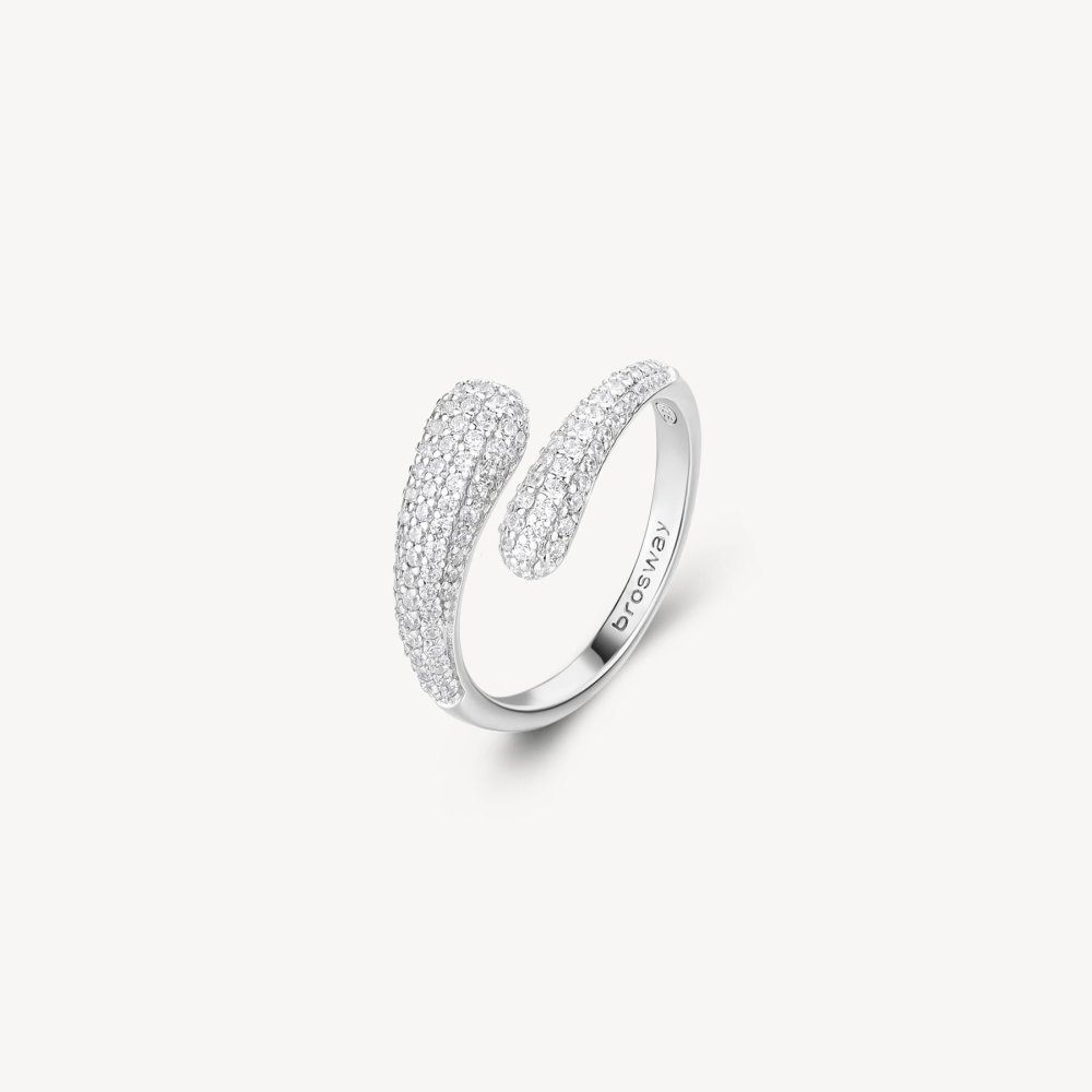 Anello contrarié in argento rodiato con cubic zirconia di Brosway.