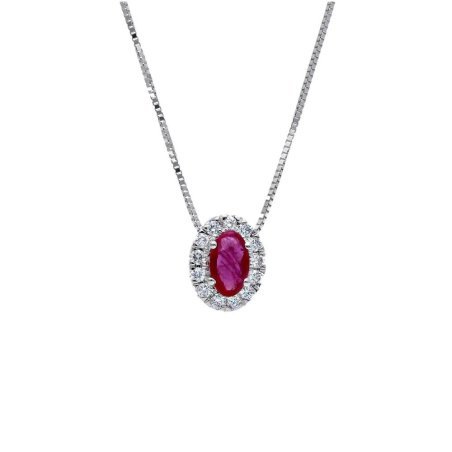 Girocollo in oro bianco con rubino e diamanti di Songa Antonio.