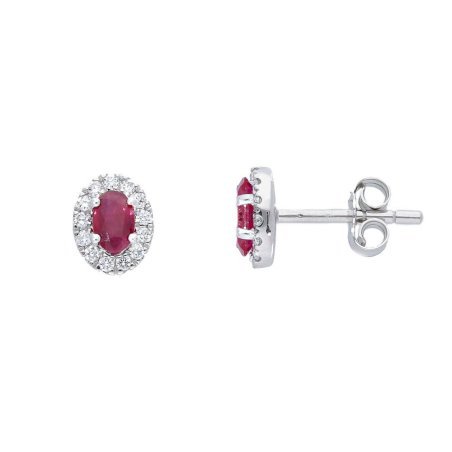 Orecchini lobo in oro bianco con rubino e diamanti di Songa Antonio.