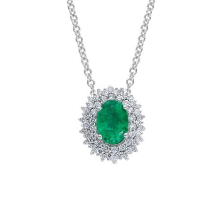 Girocollo in oro bianco con smeraldo e diamanti, 18 carati, di Songa Antonio.