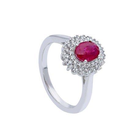 Anello in Oro Bianco con Rubino Naturale e Diamanti, 18 ct.