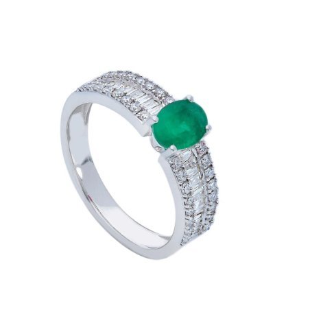 Anello in oro bianco con smeraldo e diamanti, 18 ct, di Songa Antonio.