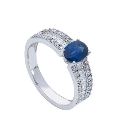 Anello in oro bianco con zaffiro blu e diamanti di Songa Antonio.