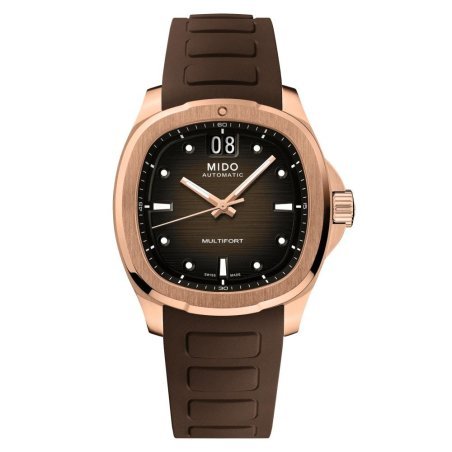 Il Multifort TV Big Date di MIDO è un orologio che unisce tradizione e innovazione. Con una cassa a forma di TV, questo modello si distingue per il suo design moderno e dinamico. Il quadrante marrone di grande impatto è arricchito dalla funzione distintiva BIG DATE a ore 12. Equipaggiato con il movimento automatico Calibro 80, offre una riserva di carica di 80 ore e una spirale in Nivachron™ per resistenza agli urti e campi magnetici. Impermeabile fino a 100 metri, è perfetto per chi cerca precisione e stile.