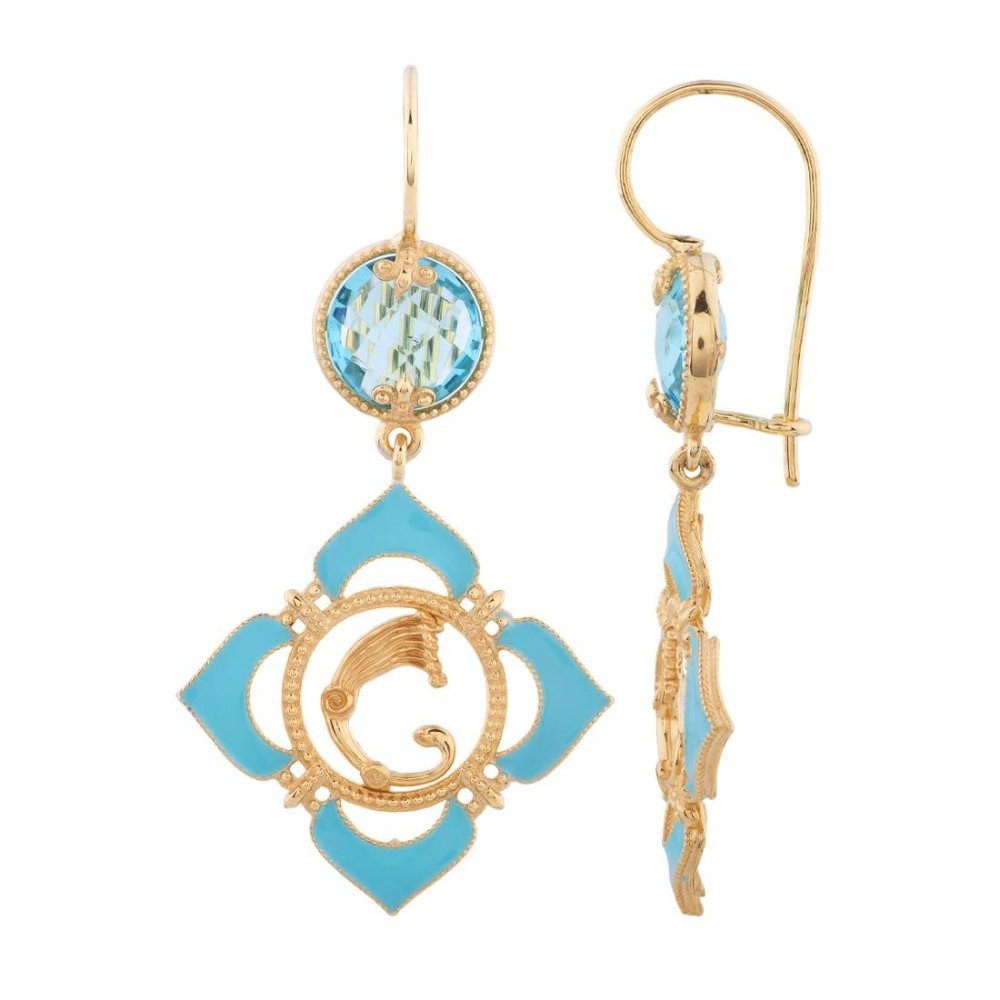 Orecchini Verve Turchesi di Spadafora: energia e vivacità in argento dorato con cristalli azzurri e smalto turchese.