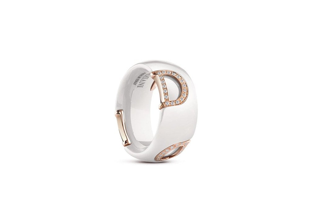 Anello Damiani D.Icon in oro rosa e ceramica con diamante rotondo.