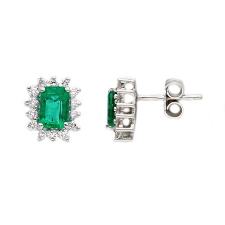 Orecchini a lobo in oro bianco con smeraldo e diamanti di Songa Antonio.