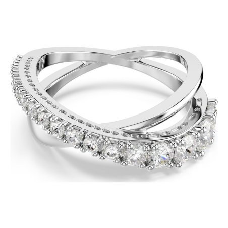 Anello Iperbola Swarovski, bianco, con fasce intrecciate e cristalli scintillanti.