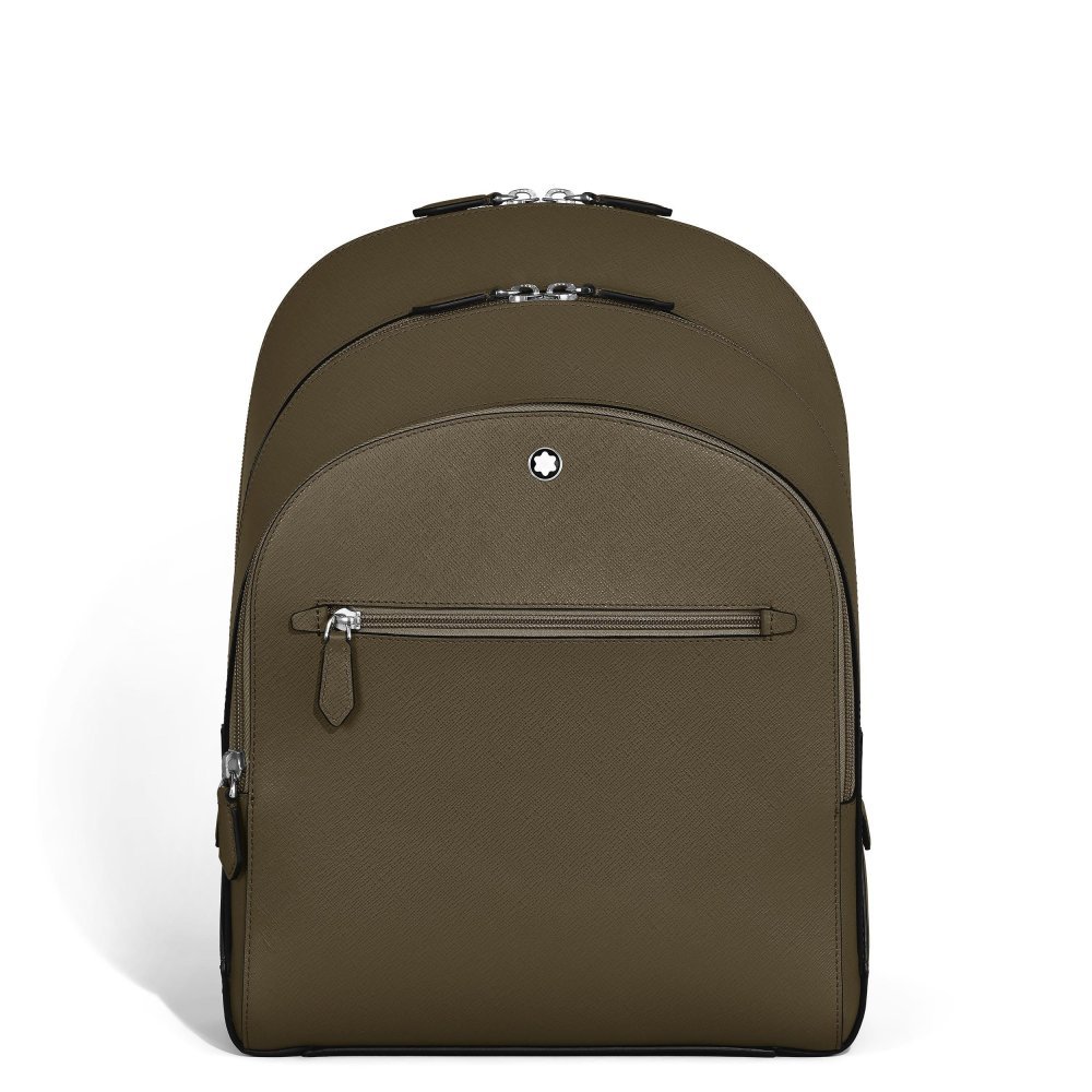 Zaino Montblanc in pelle Sartorial kaki con tre scomparti e tasca esterna.