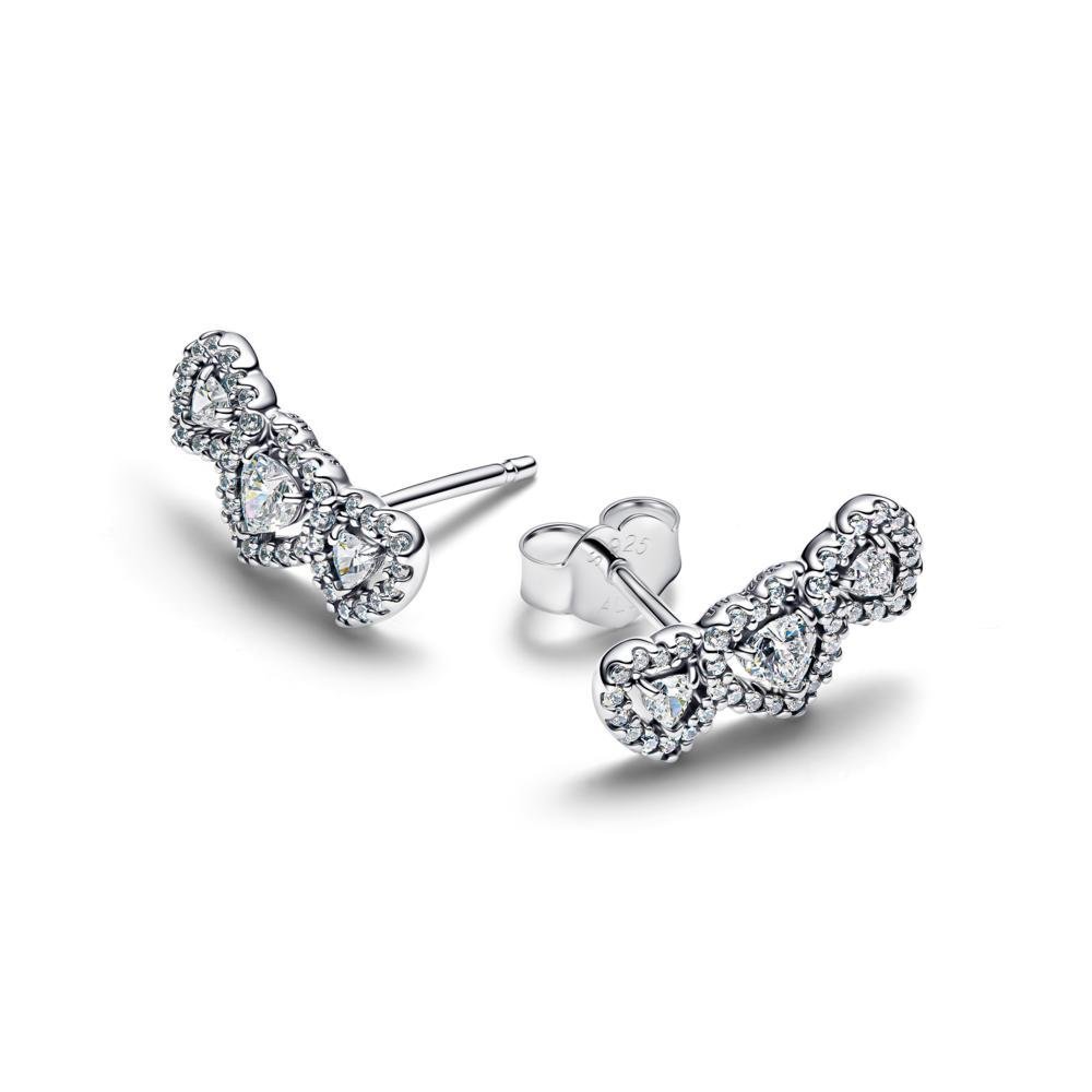 Orecchini Pandora Triplo Cuore in Argento 925 con zirconia, eleganti e raffinati.