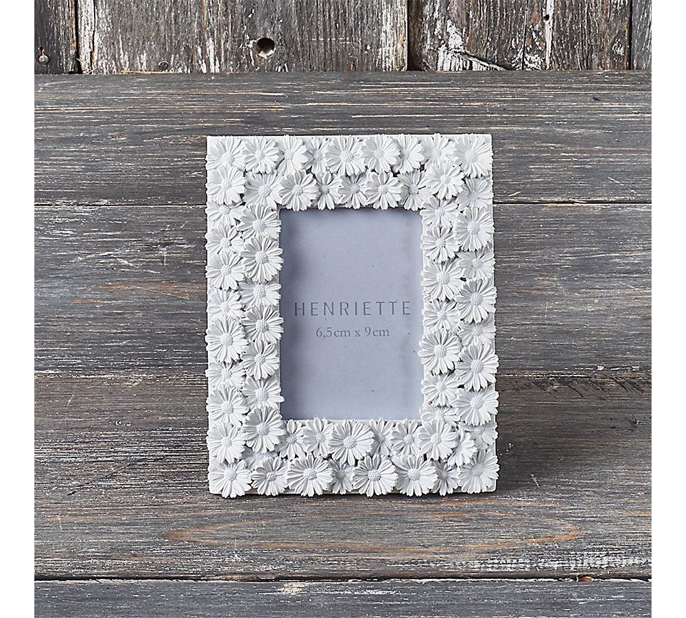Cornice Margherite di Henriette in resina bianca, dimensioni 11,5×14 CM.