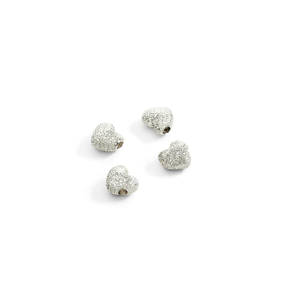 Quattro cuori in argento sterling con finitura diamond‑cut realizzata a mano. Creati in protofusione e microfusione a cera persa, sono svuotati per risultare leggeri, induriti per stabilizzarne la forma e placcati in argento per una lucentezza uniforme. Ideali per arricchire i tuoi gioielli con un tocco di eleganza e raffinatezza, questi componenti sono perfetti per chi cerca qualità e stile in un unico prodotto.