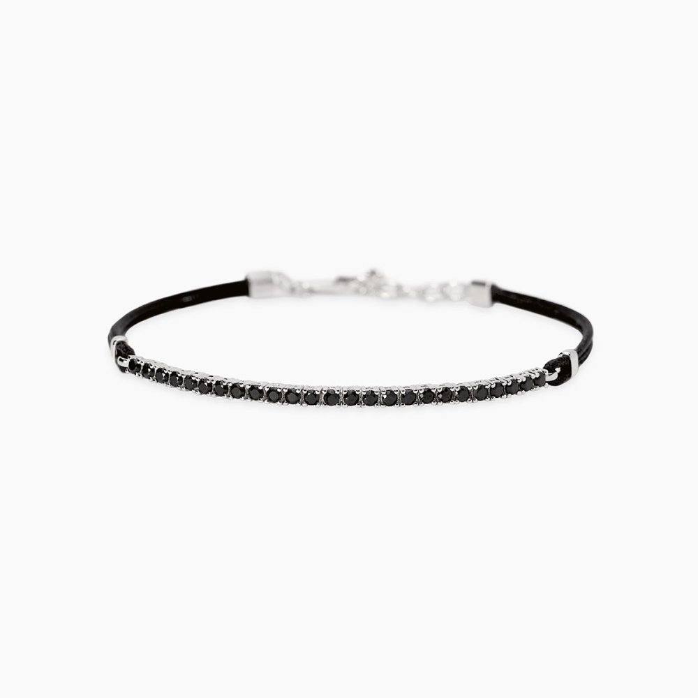 Bracciale in argento 925 rodiato con zirconi neri e cordino in nylon.