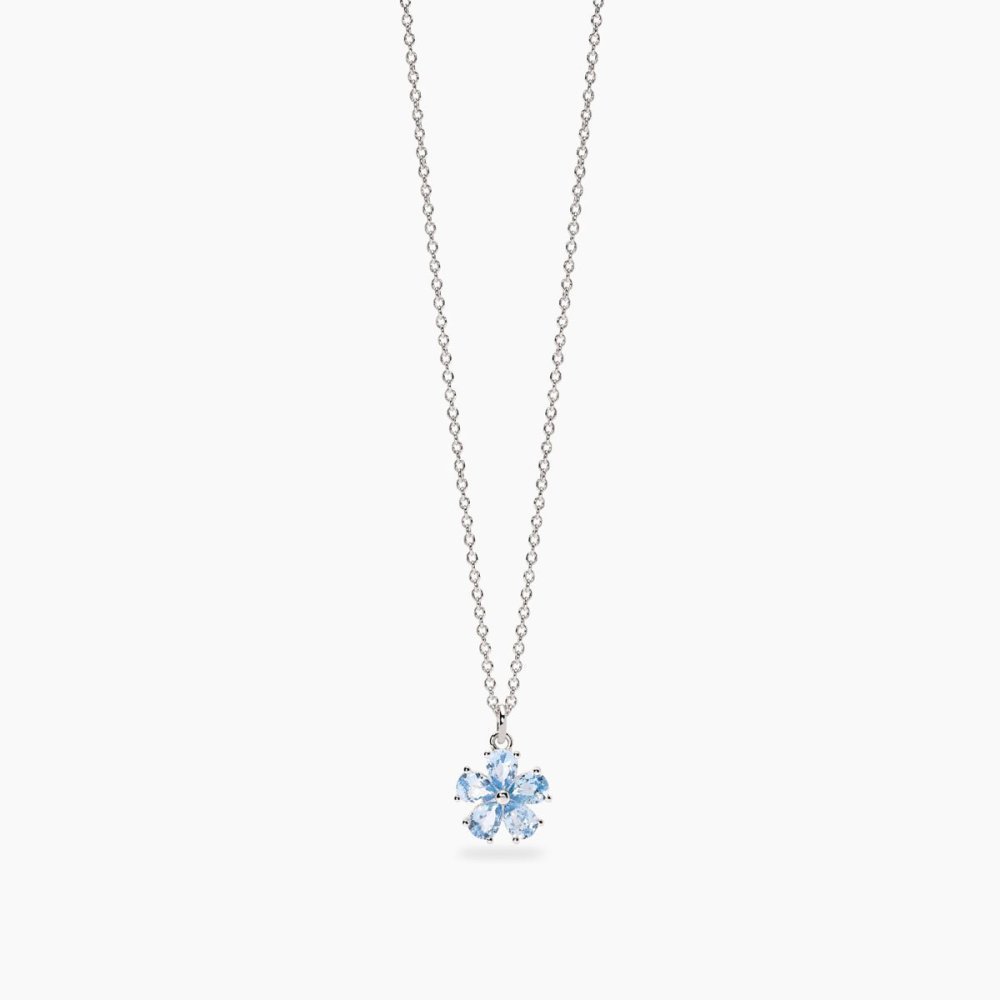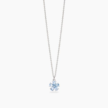 Questo elegante girocollo di Mabina è realizzato in argento 925 rodiato, caratterizzato da una catena rolò di 1.2 mm e un pendente a forma di fiore con acquemarine sintetiche taglio goccia di dimensioni 2.5x4 mm. La lunghezza del girocollo è regolabile da 40 a 45 cm, offrendo versatilità e comfort. Perfetto per aggiungere un tocco di raffinatezza a qualsiasi outfit.