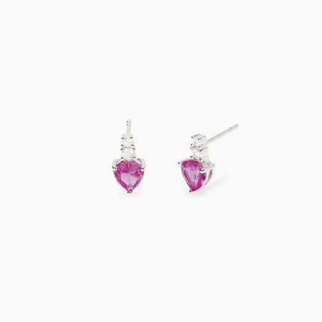 Eleganti orecchini in argento con corindoni rosa sintetici e zirconi.
