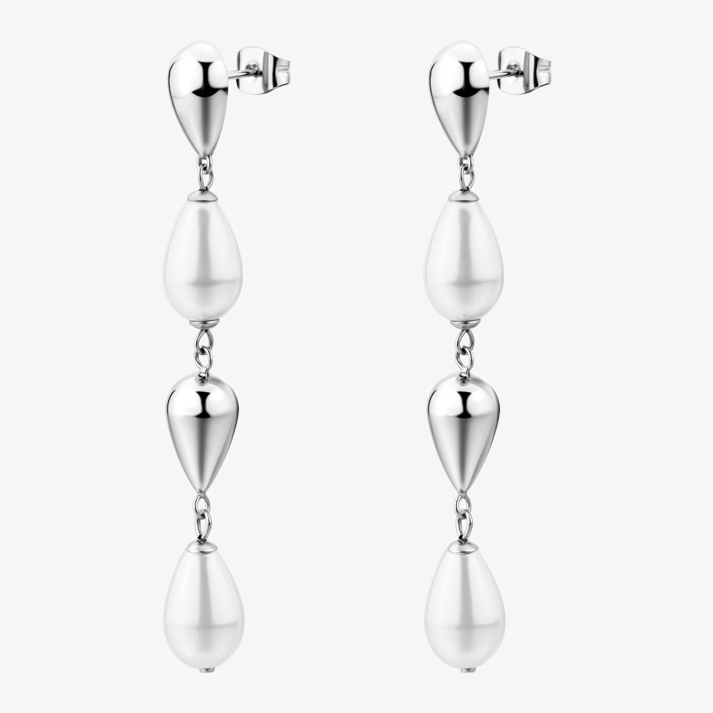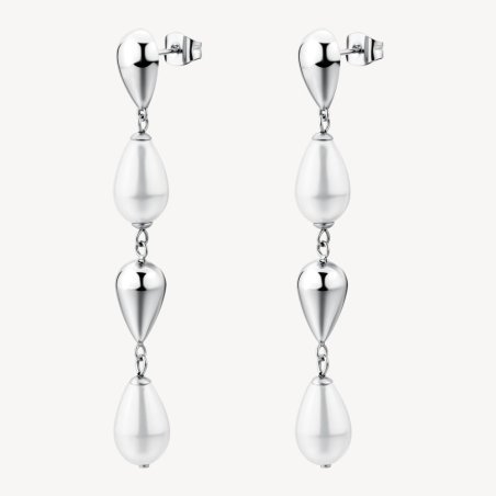 Orecchini pendenti in acciaio 316L con perle di conchiglia, collezione PERFECT di Brosway.