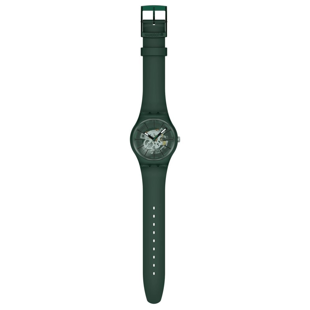 L'orologio Swatch Revealed In The Forest combina design sostenibile e funzionalità con il suo quadrante verde e cinturino biosourced.
