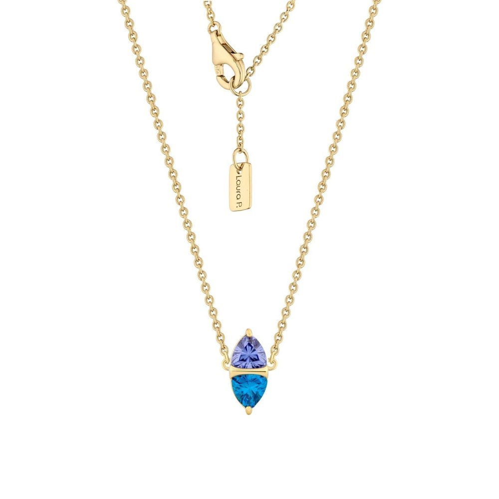 Collana in argento 925 con placcatura in oro 18kt e zirconi blu.