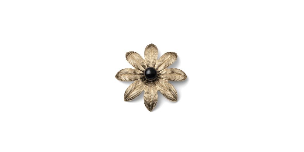 Spilla Fiore Grande dorato con perla nera, accessorio unico di Unoaerre.