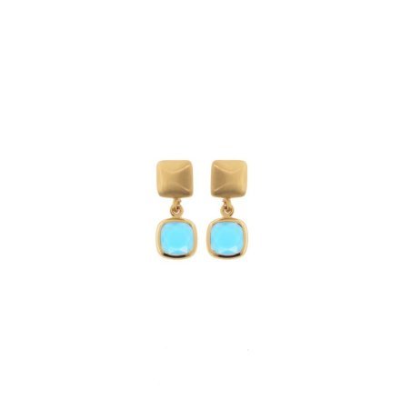 Orecchini Mignon con testa satinata e pietra quadra petrolio chiaro, placcati oro.