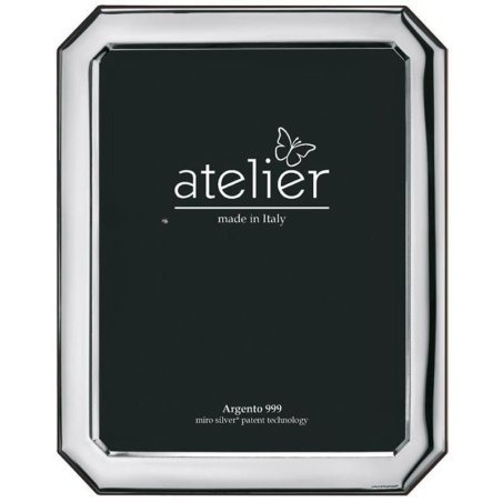 Portafoto ottagonale in argento laminato con retro in legno, misura 13x18 cm.