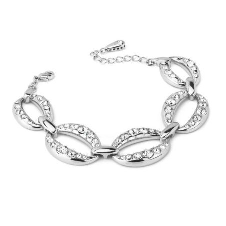 Bracciale rodiato composto da maglie ovali impreziosite da cristalli crystal di diverse dimensioni.