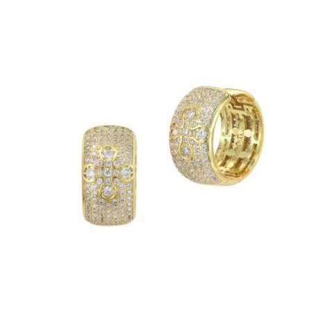 Orecchini a cerchio in bronzo placcato oro giallo con zirconi e fiore incastonato.