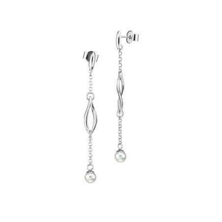 Orecchini pendenti in bronzo rodiato con design elicoidale e perla.