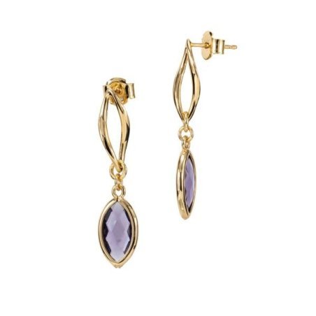 Orecchini al lobo in bronzo placcato oro giallo con cristallo ametista pendente.