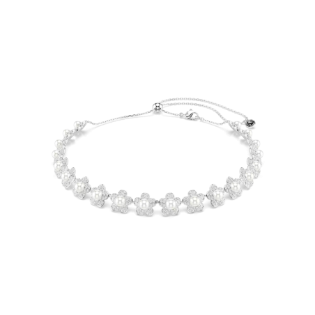 Fai risplendere la tua raffinatezza con la radiosa collana, caratterizzata da un filo a tutto tondo di delicati fiori, ciascuno realizzato con una Crystal Pearl Swarovski al centro e petali impreziositi da scintillante pavé. Il design ispirato alla natura è ideale per un tocco di lusso da tutti i giorni e può essere regolato tramite il meccanismo scorrevole sul retro.