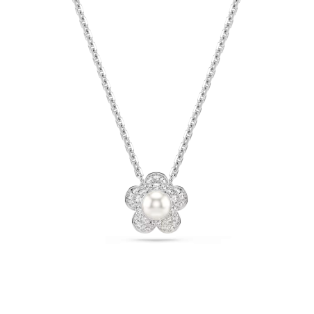 Pendente Ariana Grande x Swarovski, fiore bianco placcato rodio, eleganza naturale.