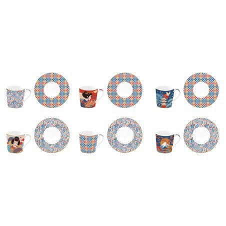 Il set di 6 tazzine da caffè con piattino della collezione Tokyo di Easy Life è realizzato in porcellana di alta qualità. Le decorazioni vivaci, ispirate alla cultura giapponese, includono motivi floreali, geishe e paesaggi orientali, conferendo eleganza e originalità a ogni pezzo. Ideali per un momento di pausa dal sapore orientale, queste tazzine sono adatte al microonde e lavabili in lavastoviglie. La scatola colorata abbinata, che riprende la fantasia delle tazzine, le rende anche un'ottima idea regalo.