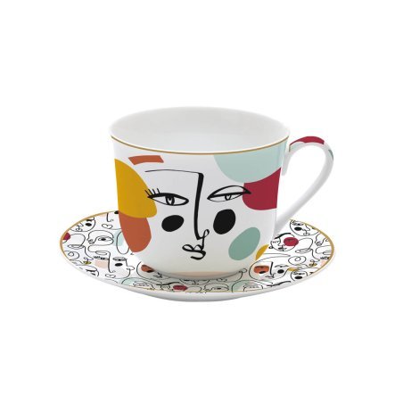 La tazza colazione con piatto da 400 ml in porcellana della collezione Modernism di Easy Life è un omaggio all'arte moderna. Ispirata al Cubismo e ai volti Picassiani, questa tazza è perfetta per chi ama il colore e l'irregolarità. Realizzata in Fine China, è adatta per lavastoviglie e microonde. Con un peso di 700 g, include un piattino e una scatola regalo litografata, rendendola un'ottima idea regalo. Ideale per colazioni energiche o per gustare tè e bevande calde.