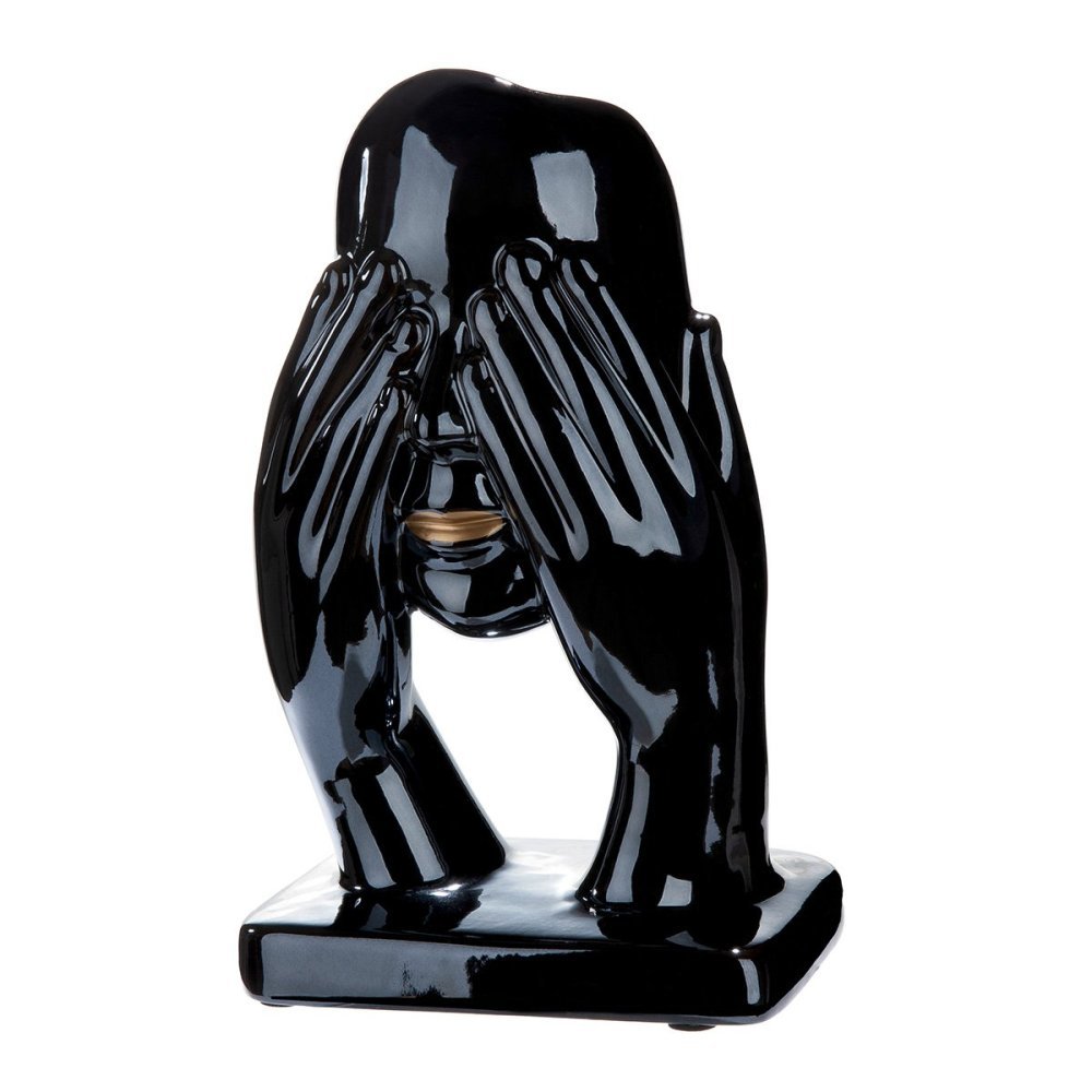 Figura artistica 'Nichts Sehen' in ceramica nera di Gilde, elegante e moderna.
