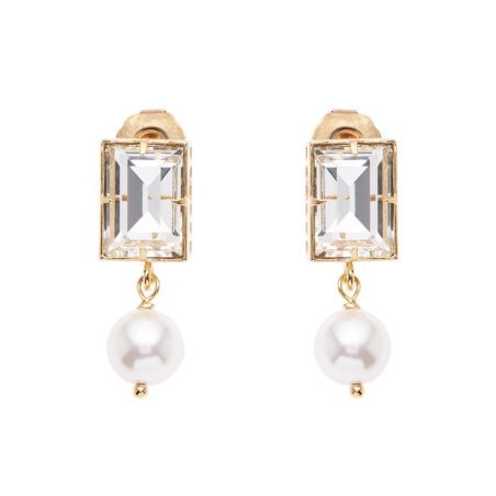 Orecchini placcati oro con perle e cristalli di Ottaviani, eleganza unica.