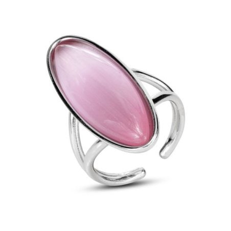 L'anello Xan232R di Boccadamo è un elegante accessorio realizzato in bronzo rodiato, caratterizzato da un grande cristallo rosa taglio cabochon dalla forma ovale. La pietra è posizionata perpendicolarmente su una doppia fascia aperta a spicchio, creando un design unico e sofisticato. Perfetto per cerimonie o come regalo speciale, questo anello è un esempio di artigianato italiano di alta qualità. La misura è regolabile dalla 13 alla 19, rendendolo un gioiello versatile e adatto a diverse occasioni.