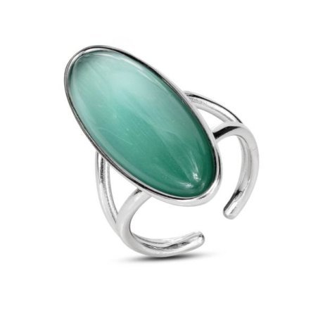 Anello in bronzo rodiato con cristallo verde acqua ovale, ideale per regali e cerimonie.