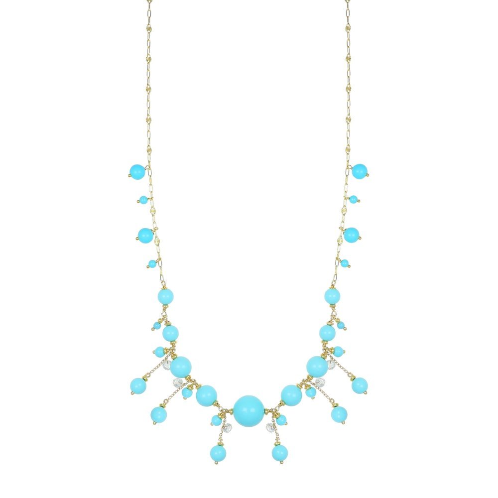 Collana in argento 925 dorato con pasta di turchese e zirconi, ispirata al Mediterraneo.