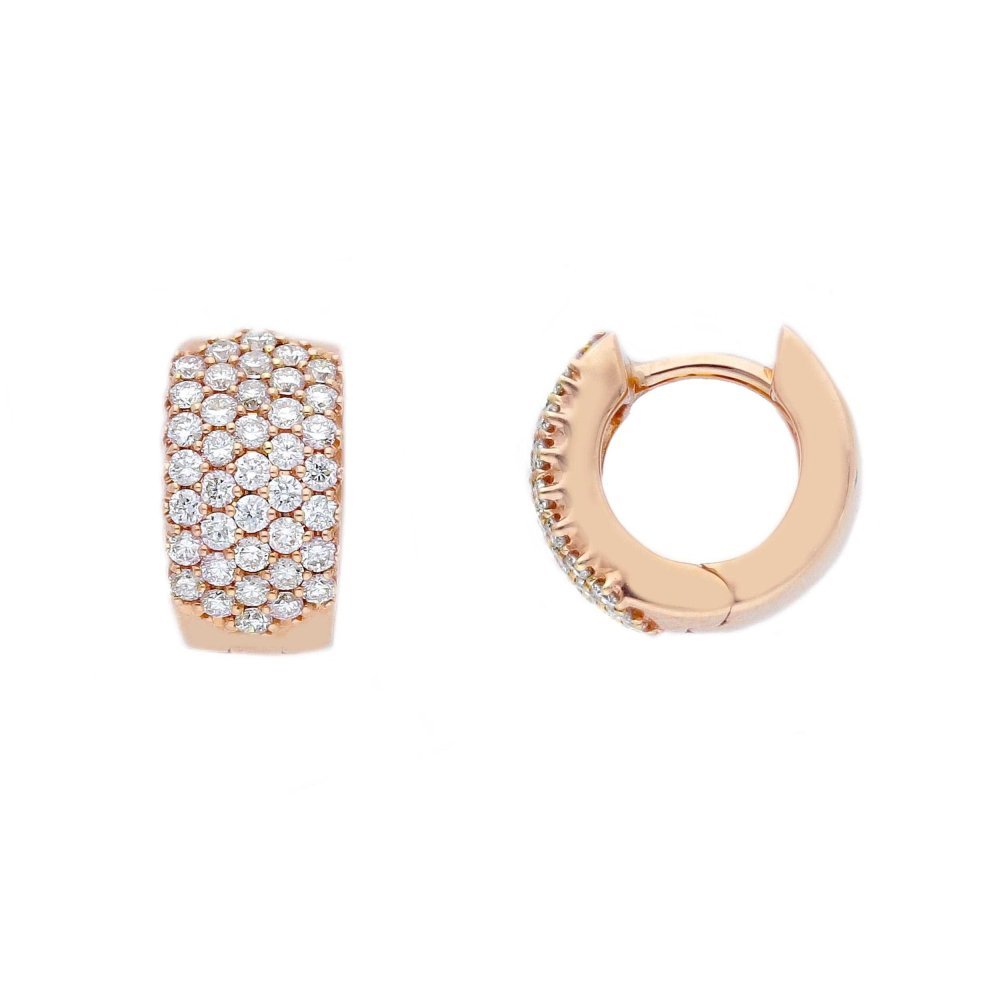 Orecchini a cerchio in oro rosa con diamanti, eleganti e raffinati.