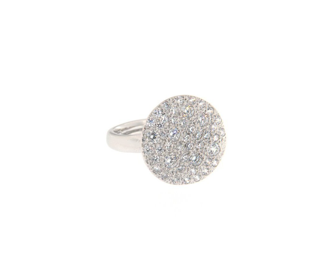 Anello tondo medio pavè bianco ag925 con gambo regolabile.